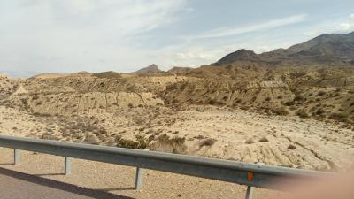 Spanien hat eine Sierra nach der anderen. Die zweite, durch die wir fuhren, hieß Sierra de Alhamilla. Leider konnten wir wieder einmal nur aus dem Auto heraus fotografieren, da es in Spanien keine Haltemöglichkeiten an schönen Plätzen gibt. Die Parkplätze an der Autobahn sind verschwindend gering, eigentlich gibt es nur Raststätten auf unseren Routen.